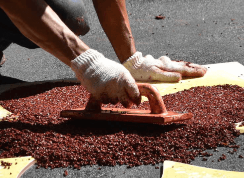 Если на основании есть ямы, требуется предварительное вываривание технологическим слоем. После чего производится укладка финишного слоя асфальта.